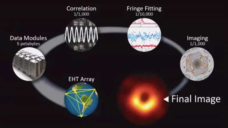 EHT形成之后,望远镜具备了“拍照”的能力,这只是黑洞照片的第一步,拍照之后的下一步是“洗”照片。