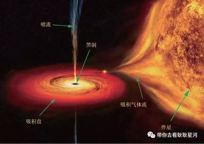 黑洞“吸食”周围的天体物质时,部分气体在被“吃”之前会沿着旋轴的方向喷射出高能粒子,这便是喷流。