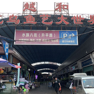 越和花鸟鱼虫市场建立于2001年初,彼时花地湾还是一个尚未开发、有些荒芜的郊区,市场一期只有5万多平方米,主要做的是花鸟鱼虫批发,到了2002年底,市场将一期东边的烂尾市场盘活,增加了高档水族区和家居工艺区,定位为家居装饰摆设类别的综合市场,旺盛时期,市场日均人流量近万人次。