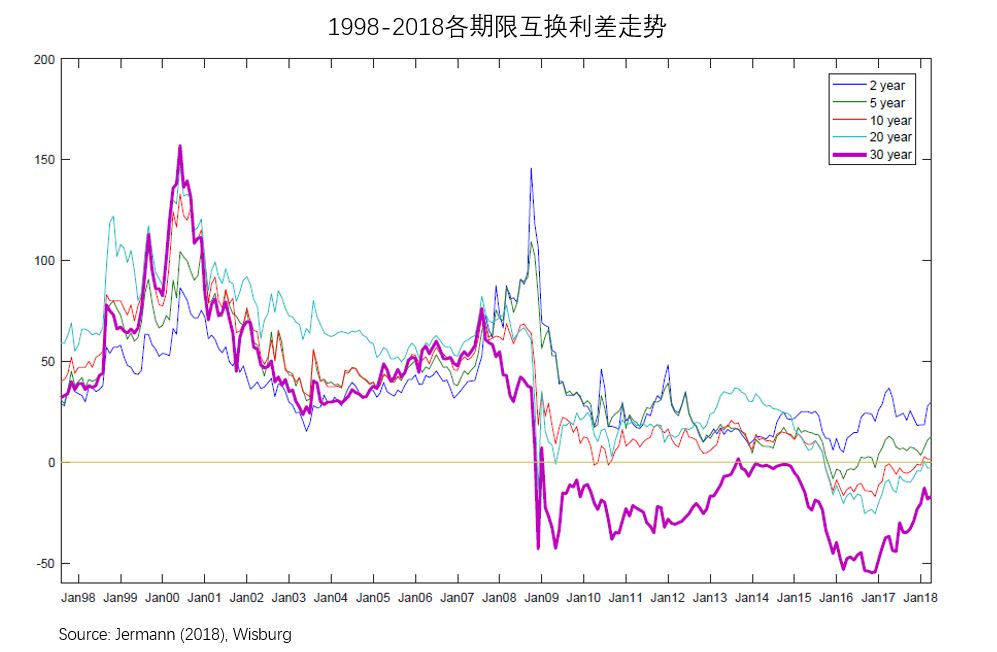 这样,我们可以进一步将其与互换价差swapspread联系起来: