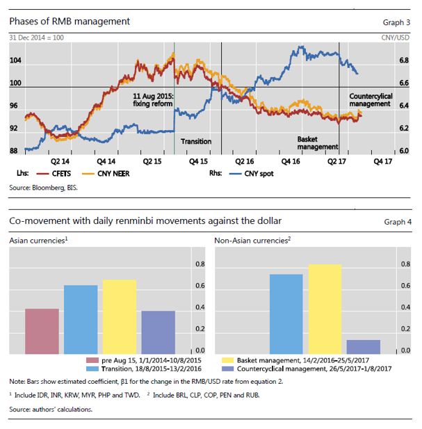 Robert N McCauley and Chang Shu, "Recent RMB policy and currency co-movements", BIS Working Papers, June 2018