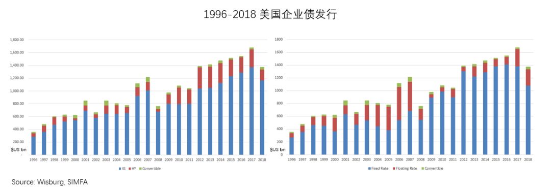 由于M&A和回购活动,企业债的发行持续强劲 (下图),这也是造成负互换利差的原因之一。由于企业资产端持有大量浮息现金工具(Cashinstruments),而负债端发行的债务多是支付固定利率(下图右侧面板),企业可以选择通过IRS将固定利率支付转换成浮动利率支付,从而使资产和债务相匹配。企业大量卖出IRS协议给Swaprates带来了下行压力,于是互换利差收紧(关于买卖swap和互换利差关系的理解参见BoxA)。