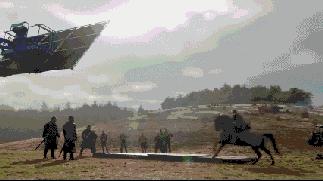 充斥画面的,绝大部分是电脑特效生成的数字战马与骑士。后期布光、与表现氛围所需要的色调、雾气等等,都在帮助特效“藏拙”。