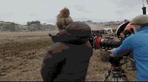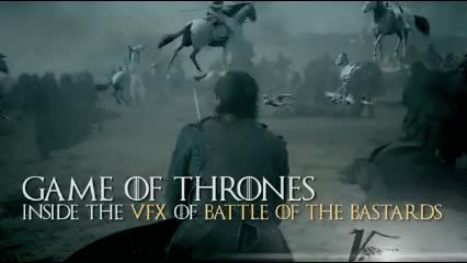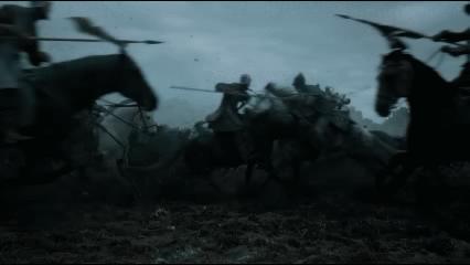据说,这一集动用了超过250人的临演队伍,他们得换上野人或是波顿一方士兵的装束,让后期特效有可以倍增士兵数量的素材。我们最终看到的阵列冲锋的壮观画面,其实是多个画面合成的,只是由于透视关系,远景的人物极为看不清,方便了电脑特效就此造假。