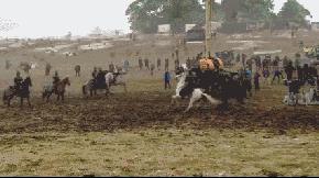 有时候,简单的取景技巧,可以制造出震撼力强大的假象,比如这个两军战马对冲的画面: