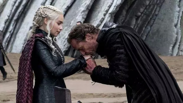 艾米莉亚·克拉克:是呀,有好多令我眼眶里泪水打转的时刻。有很多瞬间,奇特的是,我真的印象最深的是,丹妮莉丝决定不带达里奥去她的下一个目的地了。