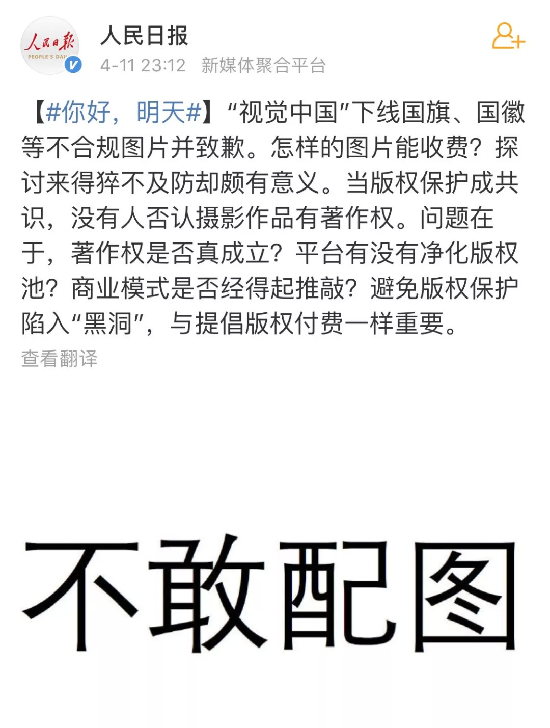 人民日报,开了个“不敢配图”的玩笑。