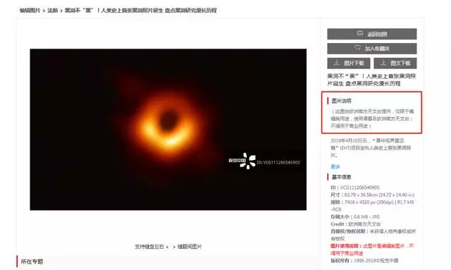 然而,有人惊讶地发现,视觉中国竟然拿下了这张黑洞照片的版权,而且用作商业用途将被追究赔偿。