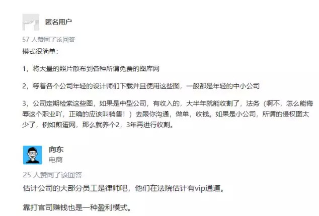 在知乎“视觉中国的商业模式是怎样的?它的主要服务对象是哪类群体?”问题下,几乎都在质疑其盈利模式: