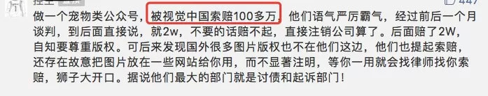 一个宠物自媒体大号,曾被视觉中国索要100万的高额费用,被逼的只能注销公司。