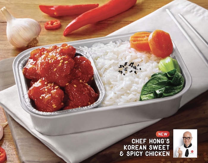 来看看亚航最新推出的一款机上餐食——韩式酸辣炸鸡套餐。别看它只是个小小的炸鸡,来头可不小。这是亚航联手韩国艺人、星厨洪锡天推出的一款韩式风味。据说洪锡天是位知名艺人,同时也是韩国餐饮业的风云人物,想必这样一位星厨创作的炸鸡,口味应该不会差。