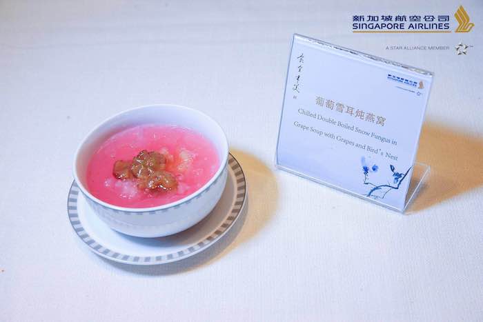 今年新推出的餐食口味更偏清淡,特别是往返新加坡与北京、上海、广州和香港的指定航班,还有全新升级版的中式餐食“食全味美”可以品尝。葱油金瓜丝和酱香黄瓜、海鲈鱼配椒麻豆腐、胡椒萝卜煮牛肋骨和香糟五花肉配菜心,搭配米饭或面条,还有柳橙胖大海、木瓜雪耳露这样的中式甜品。对了,如果你从上海出发,别忘了尝尝人气甜品汤——葡萄雪耳炖燕窝,想必会开启你的味蕾体验。