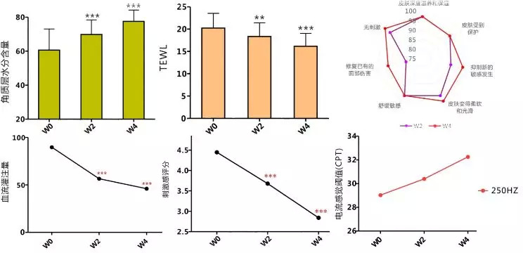 根据养生堂提供的第三方测试报告显示,使用桦树汁喷雾后,被测试者的血流灌注量、乳酸刺激值、电流感觉阈值等皮肤敏感指标,和角质层水分含量、经皮失水率(TEWL)等保湿指标这两项,均有显著性改善(p<0.05)。可以看到,这款喷雾在舒敏功效的基础上,还具有较好的保湿功能,或许能够填补目前市场上喷雾产品“不够保湿”的需求空白。