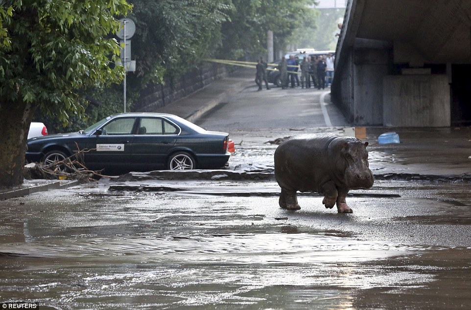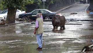 最近,格鲁吉亚首都第比利斯大雨滂沱,市内河道泛滥引发洪水,第比利斯动物园被大水冲毁,超过30只动物逃了出来奔向街头,警方不得不立马全程追捕。这些成功“越狱”的动物包括老虎、狮子、狼、河马等危险动物,当地居民被建议尽量呆在室内。