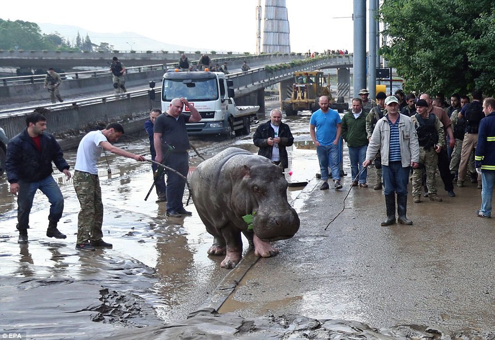 这次格鲁吉亚洪水夺走至少12条人命,其中包括第比利斯动物园的3名工作人员。由于市内的维尔河就在动物园旁,因此洪水冲毁了动物牢笼和动物园大门,导致狮子、老虎、黑熊、美洲虎、狼和河马等猛兽逃离动物园,流落第比利斯街头。