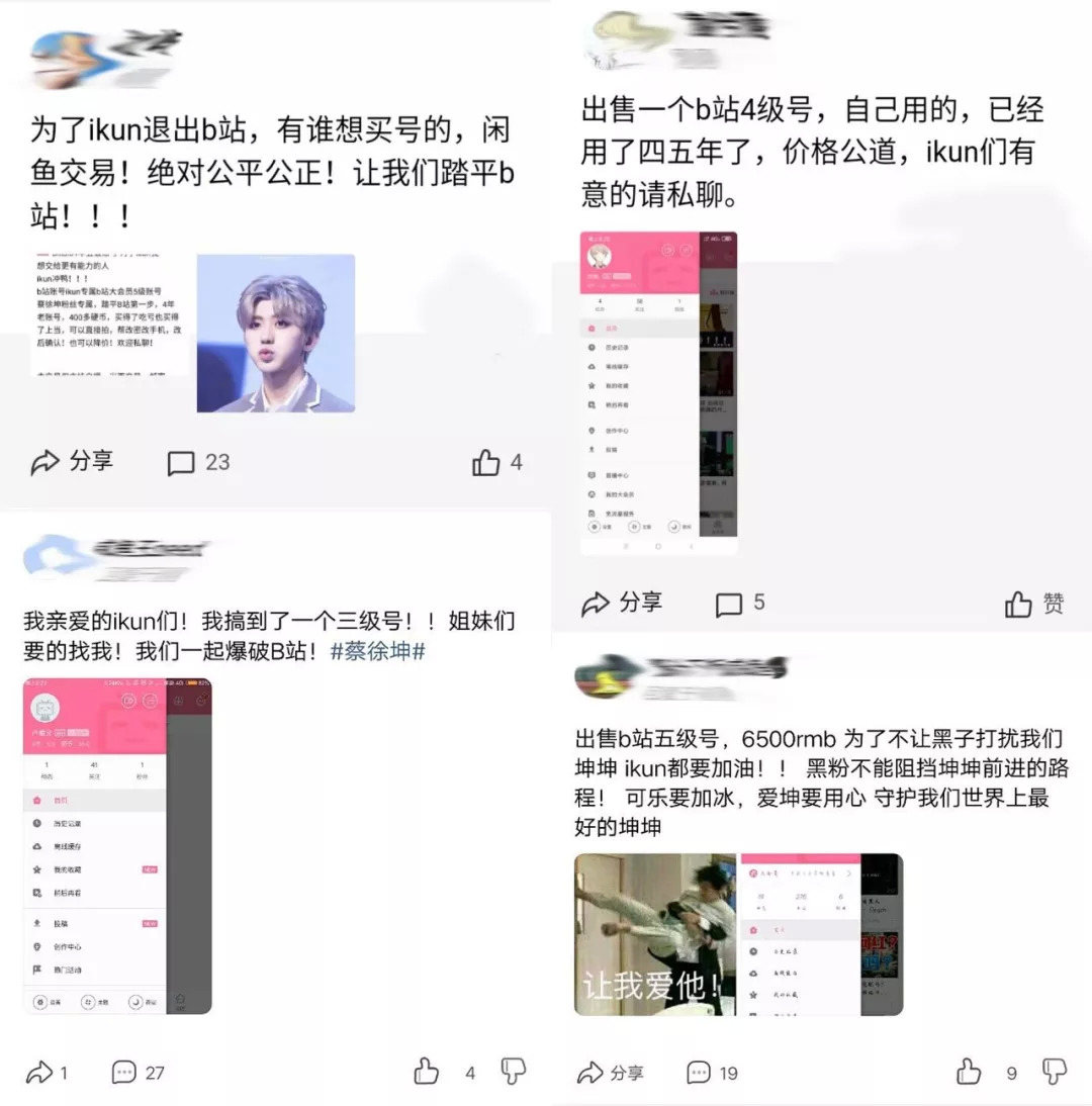 技术宅的网友爆了蔡徐坤的贴吧,许多人在蔡徐坤贴吧卖自己的B站账号,嘲讽蔡徐坤粉丝。