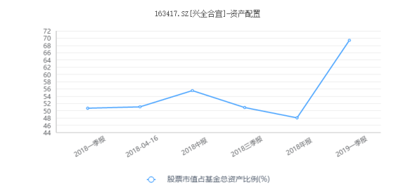 首募规模超300亿元的网红基金兴全合宜在2019年一季度进行了大幅加仓,股票仓位从2018年末的48.04%增加至69.39%,加仓逾21个百分点。而在行情低迷的2018年,该基金几乎全年维持50%左右的股票仓位运作。