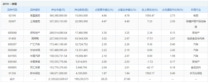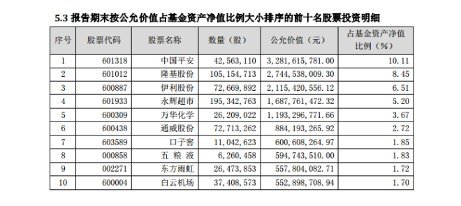 从持仓变动来看,该基金第一大重仓股中国平安被增持至顶配(10.11%),此外,相比2018年末减持的三安光电、海澜之家和韵达股份,万华化学和五粮液新进入到该基金的前十大重仓股中,并继续重仓了隆基股份、伊利股份、永辉超市等龙头个股。