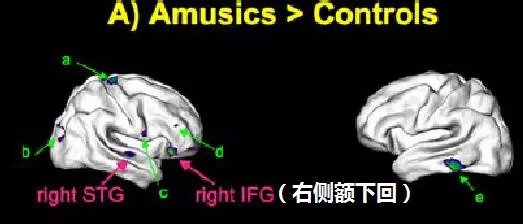 (图片来自Hyde, K.L. et al. 2007 "Cortical Thickness in Congenital Amusia")