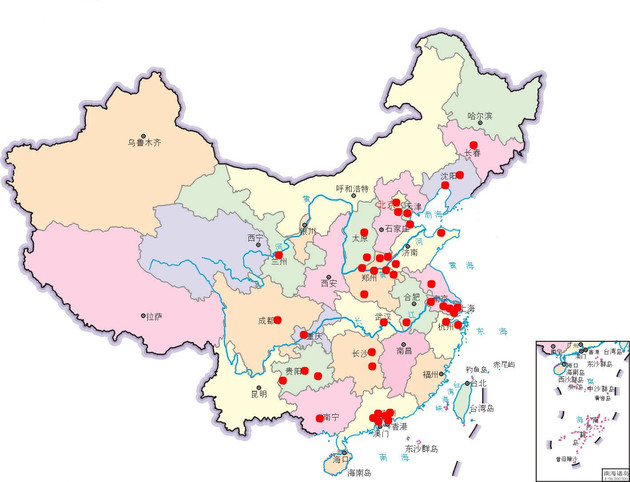 华东地区:烟台、菏泽、淮安、南京、无锡、嘉善、昆山、上海、宁波、杭州、安庆