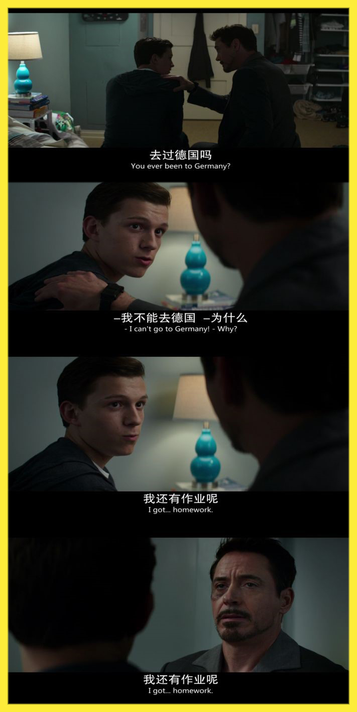 后来主动拒绝加入复联,小蜘蛛指定是想清楚了,作业还是比耍帅更重要吧(并不)。