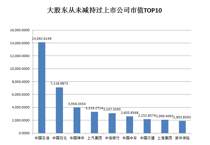 随着年初开始的“大牛市”,A股更是上演减持公告漫天飞的场景,平均下来每一天就有20多份减持公告,大家到如今多多少少也是有点儿免疫了,毕竟无论是什么价投股、妖股,大多都逃离不了减持的的命运。尽管在“众司皆减”的大浪潮之下,我们发现了仍然有109家公司“独善其身”,从上市到现在仍然保持0减持的记录,其中不乏我们耳熟能详的公司,市值排名靠前的有“两桶油”的中石油、中石化,煤炭老大的中国神华以及上汽集团,我们能够发现这些公司大多都是行业中的龙头,而且以国企居多。
