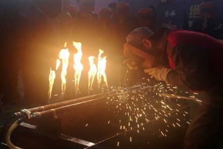 我是李文武,首都航天机械有限公司的特种熔融焊工。在冰火交融间,我可以迅速完成焊接任务。焊接喷着水、冒着火的两根钢管时,两根钢管中的气体和水可能返流,严重时,甚至引发爆炸,所以必须在2至3秒内将小孔焊住。