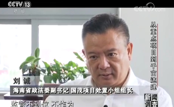 海南省政法委副书记、国茂项目处置小组组长刘诚:我们认为这个里面政府确实是监管不到位、不作为,甚至有一些公职人员与这个不法企业相互勾结。明知违法在这个农用地上盖这么大一片房子,后果非常严重,造成的影响非常恶劣。给海南自贸岛的建设实现形成了非常大的损害,这些问题确实是值得我们深思的。