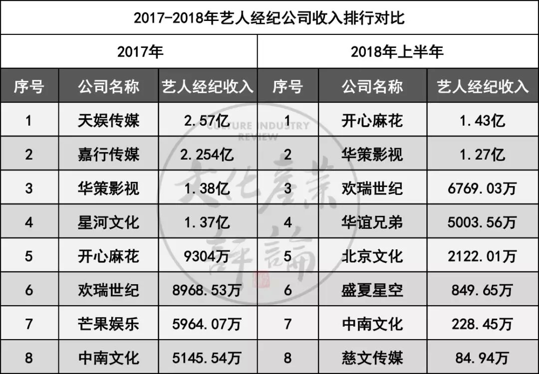 2018年以来,艺人限酬、税收整改等政策的出台,以及IPO、并购等资产证券化,对艺人经纪业务的影响很大,单纯依靠超一线明星创造高额利润的传统生态逐渐被打破,艺人经纪行业目前正面临重新洗牌的局面。