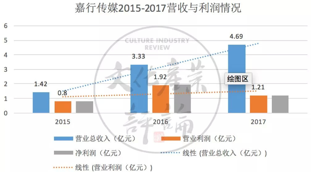 以嘉行传媒为例,在成立之初就确定了艺人经纪+影视制作+全产业链开发的业务经营模式。2017年出品的现象级电视剧《三生三世十里桃花》不仅让杨幂热度不减,还捧红了嘉行旗下的迪丽热巴、高伟光、张彬彬、王骁等10多名艺人,市场知名度的提升带来艺人经济收入的数量和单价上升,嘉行传媒在艺人经济上的收入同比增长43.43%,全年实现营业收入47788万元,超过部分A股公司,嘉行由此获得2017年中国新三板年度盛典“最佳资本运作奖”。