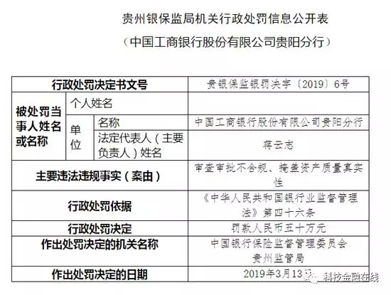 不止城商行,国有银行也因相同原因受到处罚。4月8日,贵州银保监局一连披露4则行政处罚信息,均涉及掩盖资产质量真实性、违法违规发放贷款掩盖不良等行为,其中工商银行贵阳分行因审查审批不合规、掩盖资产质量真实性的行为被贵州银保监局处罚50万元。
