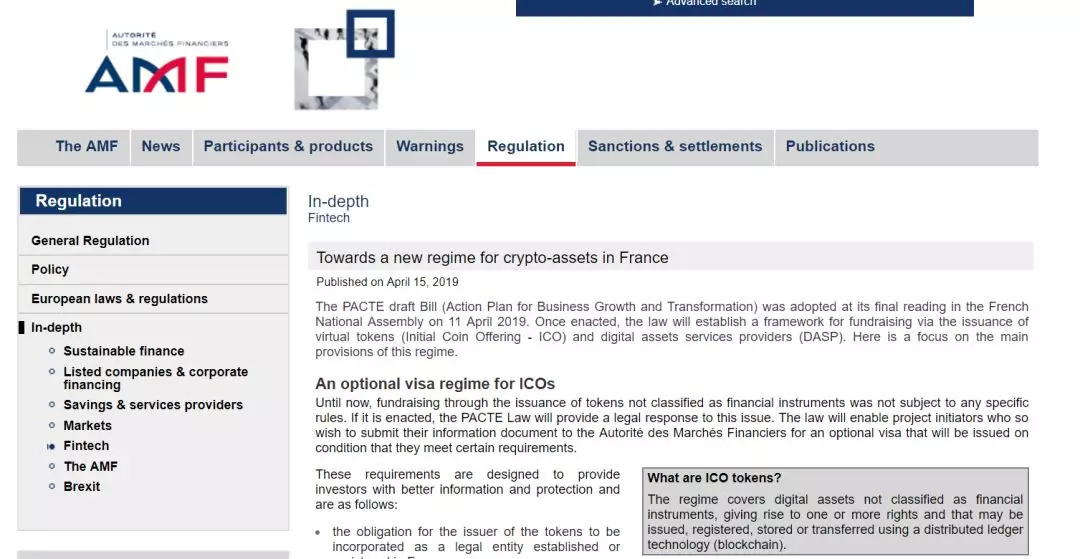 但这只是法国国民议会4月11日通过的内容广泛的区块链法案的一部分。作为“PACTE法”的一部分,政府计划创造一个更有利于中小企业(SME)增长的新法律环境,该法案还为首次发行硬币的供应商(ICO)以及“数字资产服务提供商” (如交易所和托管人)提供了获得在法国经营“visa“的选择权。