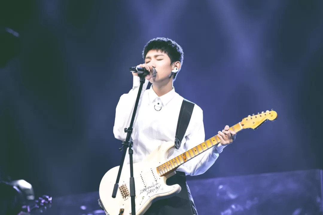2018年11月17日,王源在重庆举办了BORNFREE十八岁演唱会,露出额头,穿上西装,唱抒情歌也弹吉他唱摇滚。