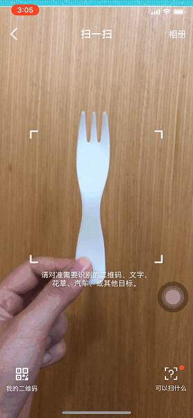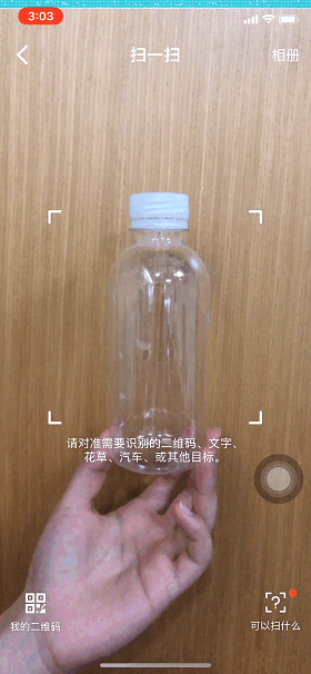 你只需要打开手机QQ,点击右上角“+”号,对着塑料水瓶、一次性杯、一次性叉勺等塑料制品“扫一扫”,就可以看到旗鱼追赶着“食物”,却被一次性杯子套住了嘴;一只活跃的小丑鱼误入塑料瓶,被困住了;或者海豚不小心将塑料叉子吞进肚子里……