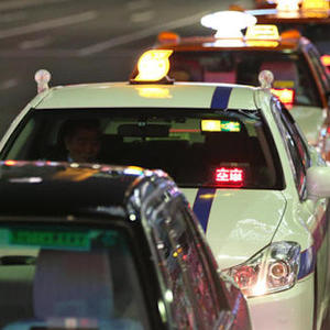 随着客人出站,方阵最左侧的出租车按秩序驶出,而方阵右侧的出租车则依次向左顺移。