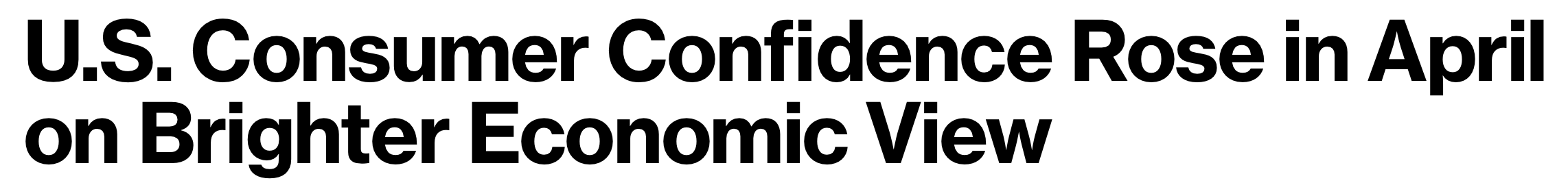 【美国4月份消费者信心反弹】美国4月份消费者信心反弹,美国人对当前和未来经济状况感到更加乐观,尽管有一些不确定因素,但紧俏的就业市场和薪资上涨支撑了消费者信心。