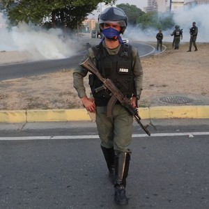 周二早上,瓜伊多发布了一段三分钟的视频,视频是在加拉加斯一个空军基地附近拍摄的,他的身边有几十名国家卫队军人和一些装甲车。他呼吁平民和武装部队中的其他军人加入推翻马杜罗的最后战斗。