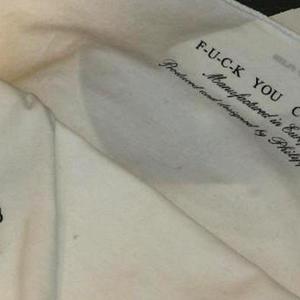 2007年,Philipp Plein生产了一批T恤,T恤背部印有“F-U-C-K You China, Manufactured in Europa, Produced and designed by Philipp Plein(x你中国,欧洲制造,Philipp Plein生产和设计)”,衣服正面左下角加印了一个代表中国的小丑(如题图)。