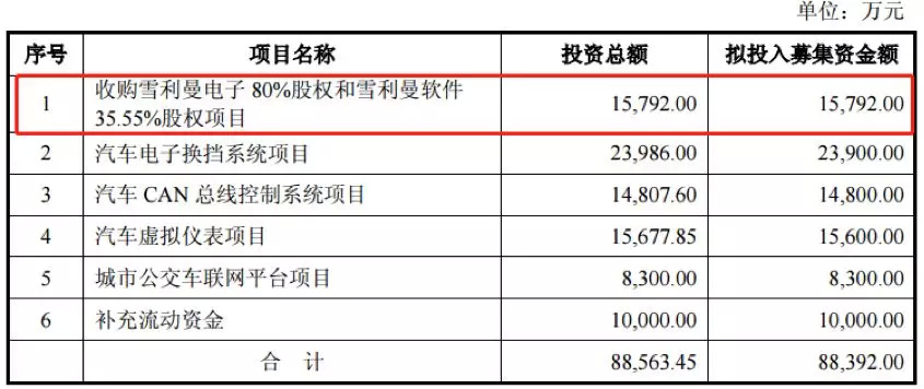 其中,约1.58亿的募集资金将用于收购雪利曼电子及雪利曼软件部分股权。事实上,这笔收购在2016年11月已经完成,公司此次募资主要是置换出前期投入的自有资金。