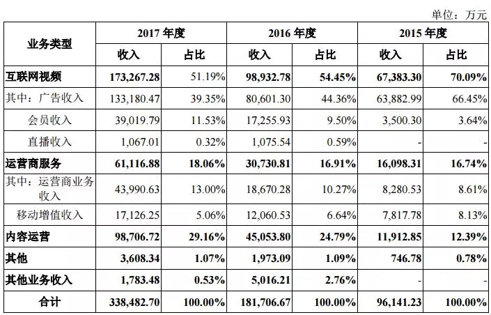 芒果TV运营主体快乐阳光2018年实现营业收入56.07亿元,同比增长66%,其中广告业务、会员业务、运营商业务的收入同比增幅分别为81%、114%、52%。
