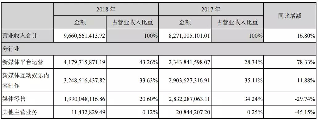 新媒体互动娱乐内容制作业务包含内容制作及运营、艺人经纪、音乐版权、游戏游戏及IP内容互动营销等;