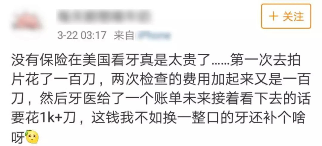 行吧,没想到相比于国外,国内看牙的价格甚至可以说是“白菜价”,这一刻真的不知道该哭还是该笑了。