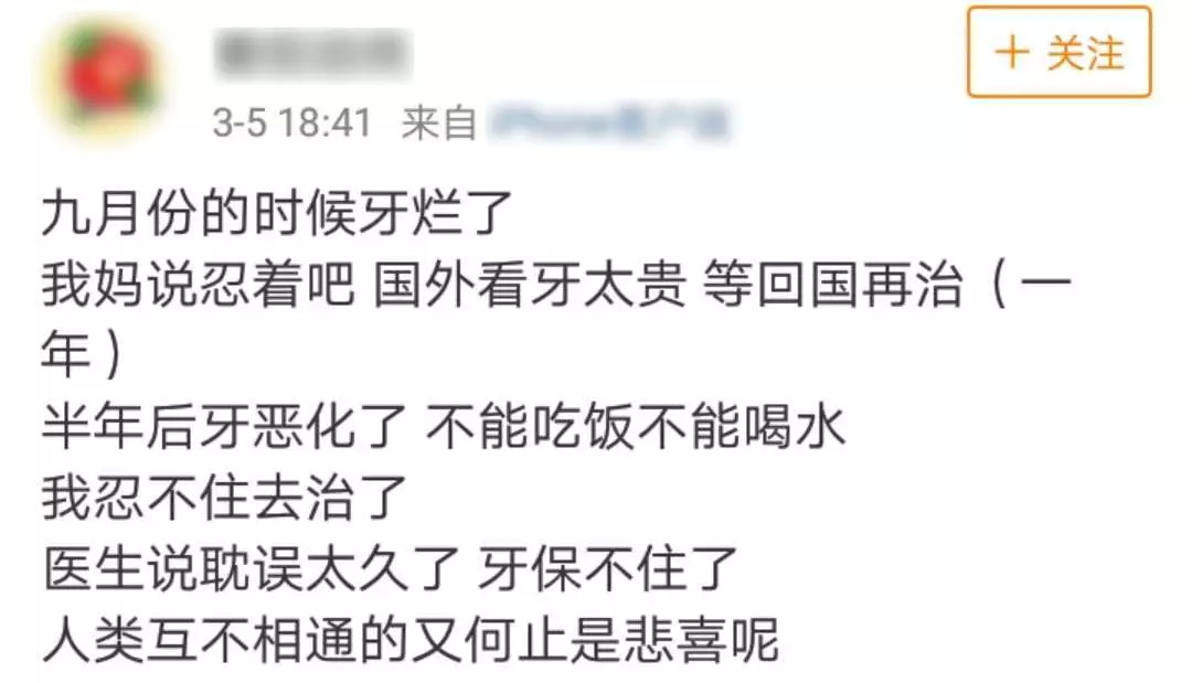 据说有很多在国外上学的孩子,为了看牙请两周假坐飞机回家,在国内口腔医院排队挂号看牙,再玩上一圈,费用可能都到不了国外原本的治疗费。