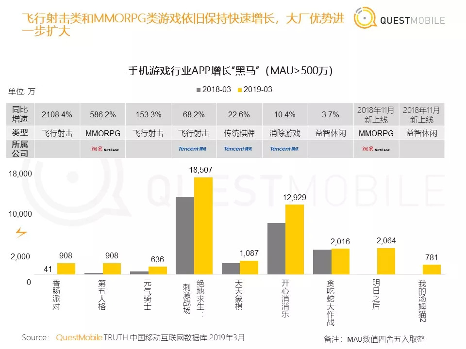 从数据可以看出,这两款游戏在全球市场的体量基本接近:根据第三方数据Questmobile数据显示,在2019年3月,《刺激战场》是中国月活第一、日活第二的游戏。其月活为1.85亿,日活为6924万;相较之下,《王者荣耀》月活为1.85亿,日活为8151万。