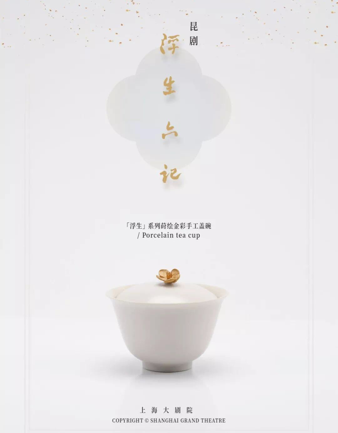为传播中国传统文化,上海大剧院展位以原创昆剧《浮生六记》为主题,将戏曲,园林等东方元素与当代时尚生活元素相结合,推出了浮生轻奢系列与浮生系列。