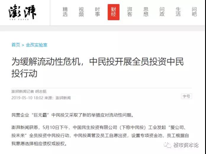 你没有看错,为缓解流动性危机,有 “巨无霸”之称的民营企业中民投采取了新的举措。据中民投年初公布的消息,有息债务为1522亿元,仅2019年到期的有息债务就达894亿元。这么一大笔债务,靠员工融资,能有用吗?还好,中民投的管理层是清醒的。