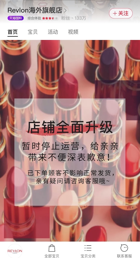 1996年中国彩妆市场萌芽时,露华浓品牌就进入了中国,但由于产品创新不足、品牌老化、市场定位不清等原因,该品牌于2013年底宣布退出中国市场。当时,它在中国的销售额仅占公司全球总销售额的2%。2016年,借着收购伊丽莎白雅顿的契机,露华浓品牌在天猫开设了海外旗舰店。但界面新闻发现,该海外旗舰店目前处于暂停运营状态,官方表示是“店铺全面升级”。