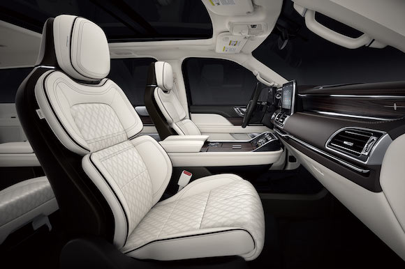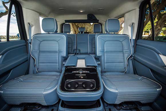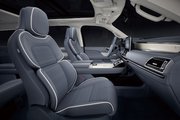 在内饰部分,林肯领航员Navigator采用2+2+3的七座内舱空间布局,营造出极致奢华的敞阔感。其中第二排座位拥有人性化的尊崇体验,专属的中央控制台让你在保持舒适坐姿的同时亦能触手调控乘坐空间,轻松掌控娱乐影音和空调温度。