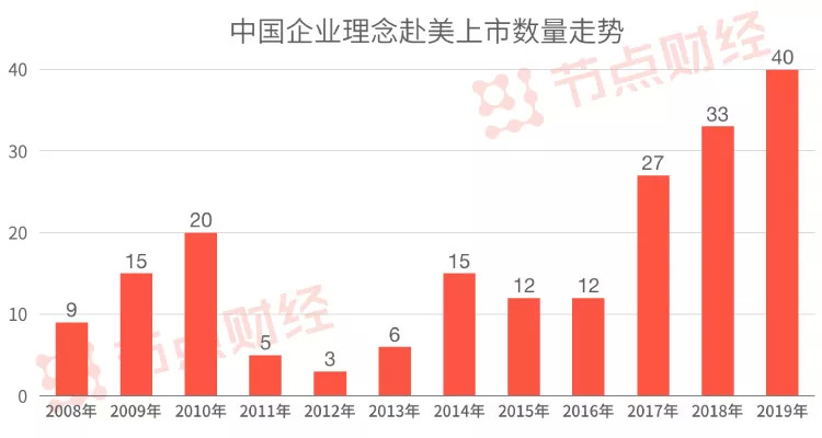 中国企业赴美上市,分别在2010年和2018年迎来两次高潮。2010年有20家,2018年有33家,预计2019年会有超过40家中国企业赴美上市。