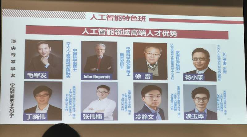 苏跃增表示,上海交大聚集了一大批人工智能领域顶尖学者,有中科院院士、上海交通大学副校长毛军发,世界人工智能领域知名专家、图灵奖得主、中科院外籍院士John Hopcroft,欧洲科学院院士徐雷等。“我们还有一批年纪轻的人工智能学术人才,可以支持人工智能专业的可持续发展。”